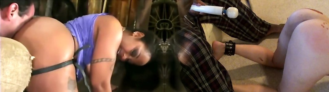 Beautiful milf was tied up, made a bandage. They spank her white ass with a whip and masturbate her clit. She moans and screams.