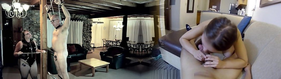 Wonderful domina flagellating & slapping her victim marionette