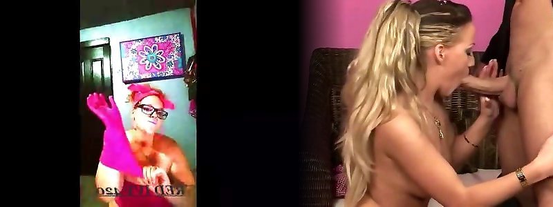 Hot blonde loves to suck dick weating latex rubber gloves. Many cum to face! Arya Grander