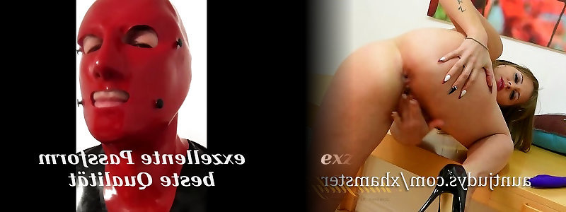 Domme Arya in latex opens up his backside with xxl faux-cock, too much for him!