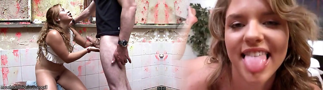 Teenager tart dragged to the toilet to get peed on, spanked and spat on. Pecker gargling
