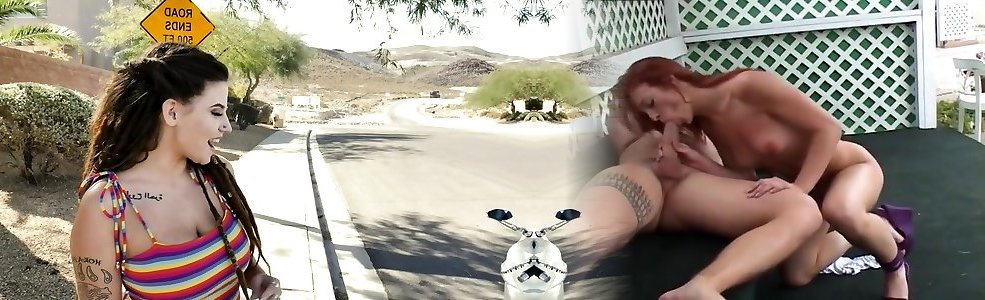 Giant bum inked crimson head milf in black rob rides 2 sluts sharing my cock bbc reverse