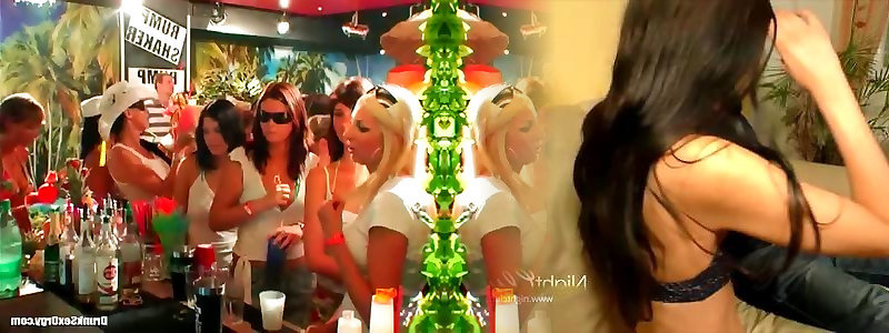 Nutted tipsy college girls are prepped for a gang fuck in billiard hall