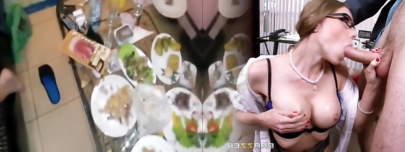 Drunk Russian grandma Venus gives head to trio sturdy sausages
