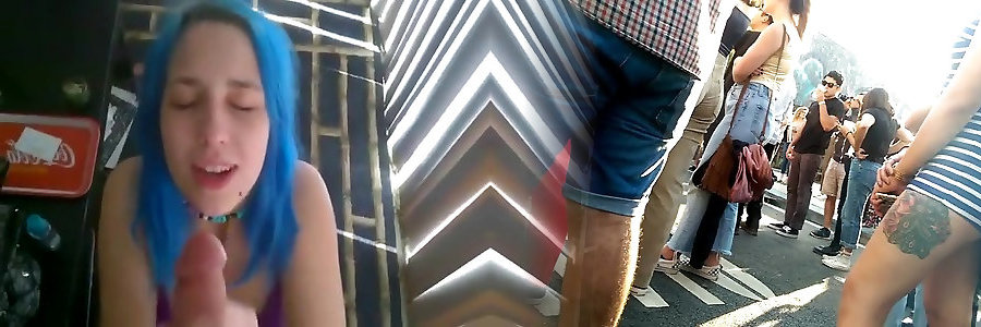Chubby punk chick with blue hair sucks her bfs chisel