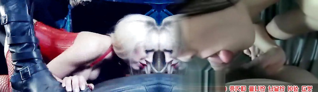 Insane towheaded fuckslut gets to pleasure 2 bones in the basement