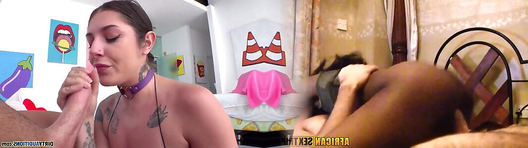 A dark-haired mega-slut takes it off and pokes a giant black guy from the back