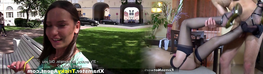 Dame slave eating scat Timid beauty lured and porked by buxomy agent