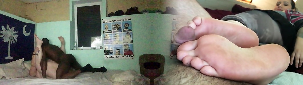 Dark-hued feet cummed while filming this
