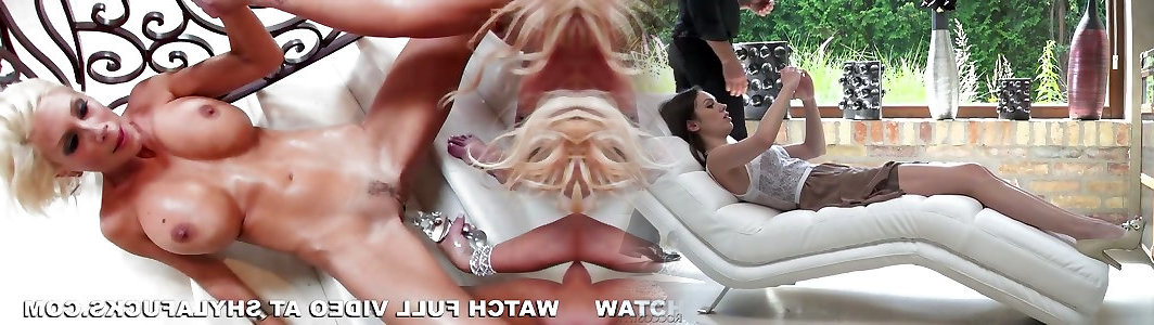 Busty platinum-blonde lezzy act with sexy hot mom riding cock and Nikki