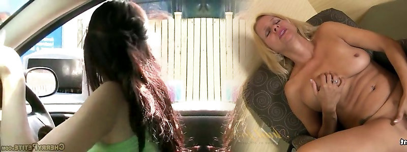 Ardent wicked breezy Jeni Angel shows jugs and gives a dt in the car