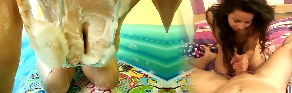 Foam intercourse party in the college dorm guest room