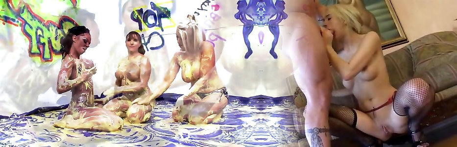 Three Nude Femmes Glaze Each Other With Colorific Foam