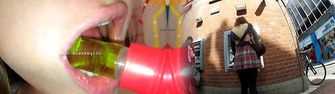 Ponytailed ash-blonde pushing lollipop down gullet