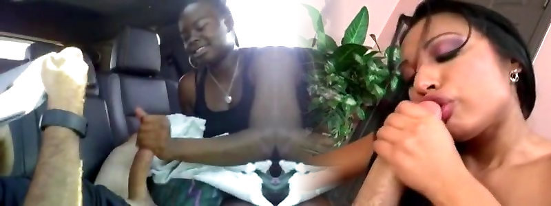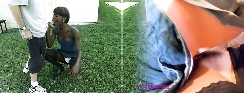 Ebony chick fellates off white man