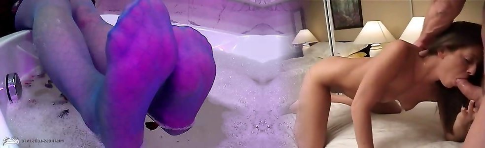 Nylon stocking fetish by Mistress Nika. Dark-hued nylon tights on slim gams Domina.