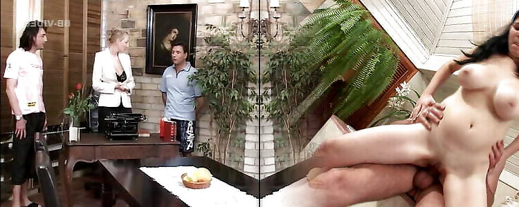 X-Rated Ejaculation Display on TV turns into a Crazy & Handsome Girlgirl Three-way Gang Orgy Soiree cruel kiss Gigantic Baps Monstrous Booty Super-hot Presenter