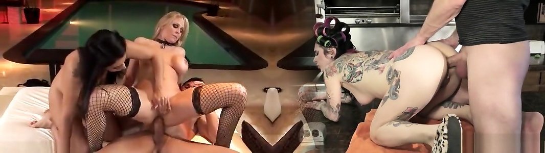 Milf stars Raylene and Julia Ann tag-squad a dude