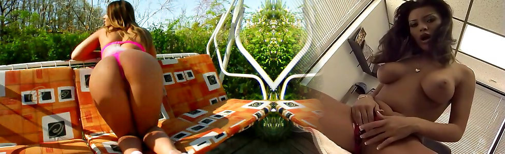 Brown-haired lezzies from the rear pummel on webcam