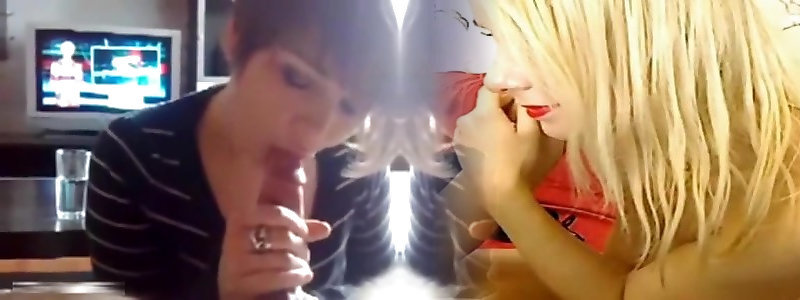2 playful girlfriends give fellatio to one man after wall painting