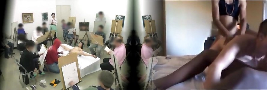 Naked models secretly boinked in the bod painting class