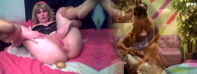 Funky round web cam blondie poops potatoes out of her cooch