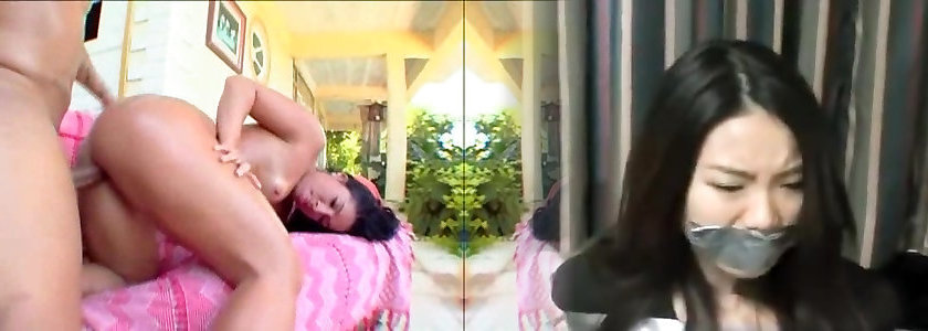 Gabbi taking 2 Big Black Cock MMF Homemade Gang-bang - short version