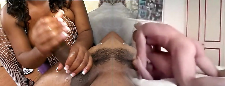 Ebony fellow loves the dual fisted mitt job his Gf is providing him