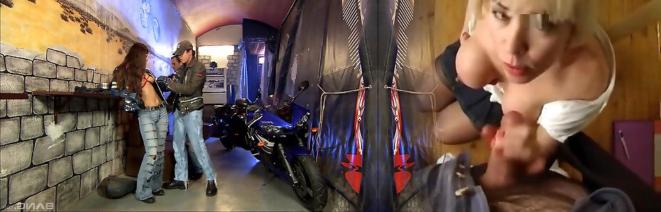 Sally Sun leans over for her fabulous partners big man-meat