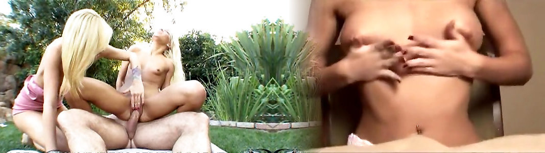 guy plows two light-haired sluts in the garden