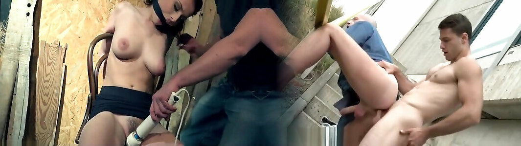 Ball-gagged and pubes strapped victim stimulated
