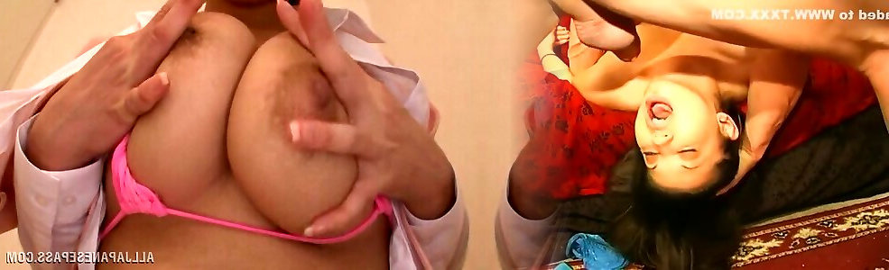 Solo Asian dame sits on moms antay restroom and fumbles her humungous orbs