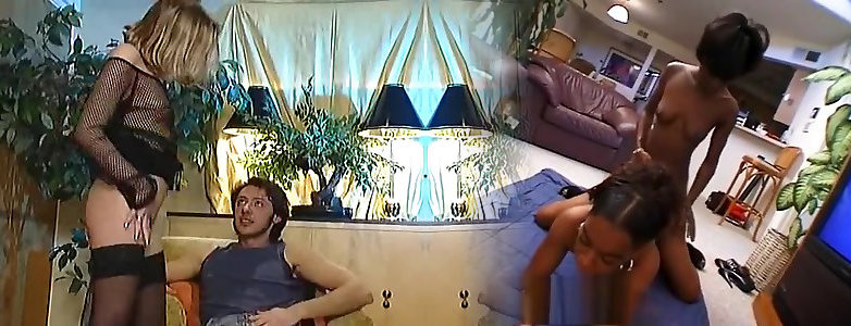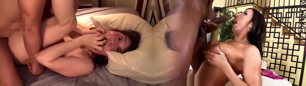 4-way lovemaking with sizzling milky damsels and one good-sized ebony rod