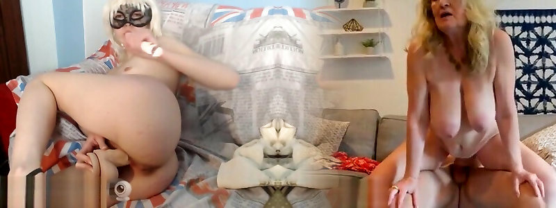 Bellezza spompina e salta sul grandpa hung cock in cam