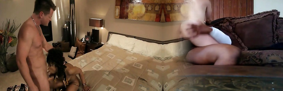 Oversexed ebony nymph gives fine deep throat to white man before red-hot boink