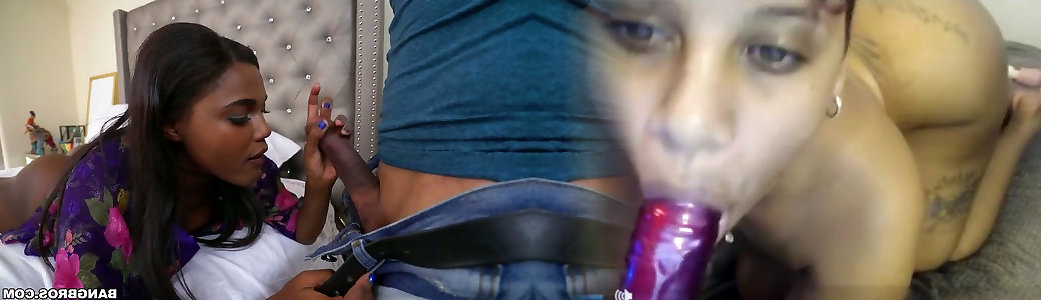 Two Luscious Black Gals Suck These Guys Stiff Rods Like They Were Their Last