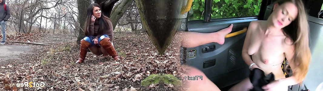 Crazy lengthy haired brunette lady pulls down denim lesbo tongue kiss urinates outdoors