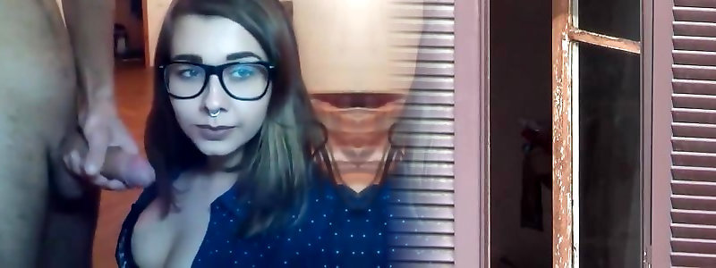 Brillentr gerin spuckt auf ihre gro en Titten