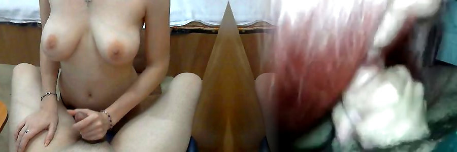 grannie is on top and rubbing his nuts