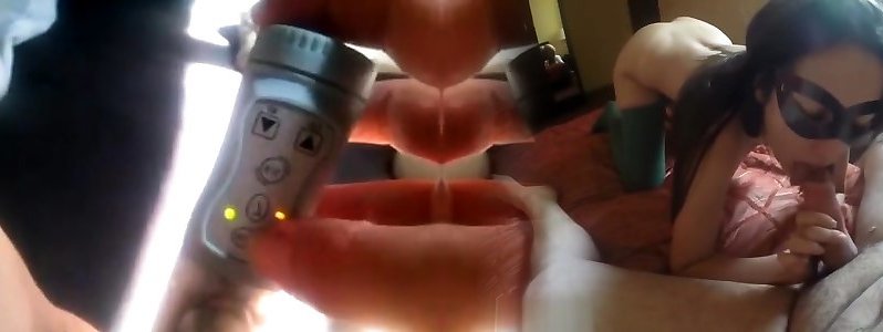 Cute japanese merely gives great blow-job during Threeway