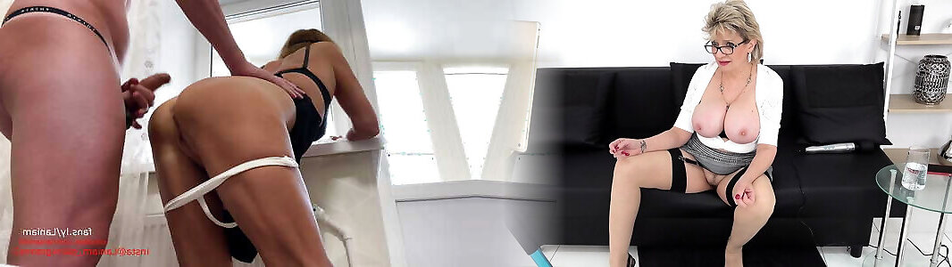 Old lady oiled ass in thong milking cock