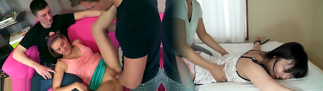 Fabulous teen with puny fun bags explored by medic and 3 way plowed on couch