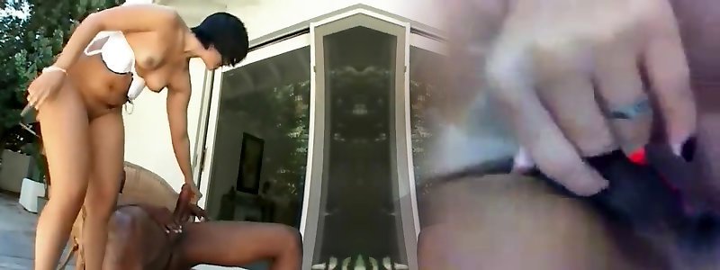 Giant donk Latina gets a enormous chocolate schlong fucking her holes outside