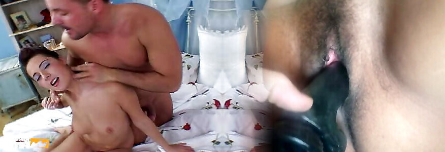 Naughty babe gets her hairy pussy and ass screwed by a handsome guy