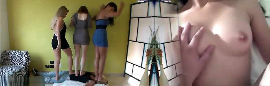 Victim trampled by two uber-sexy dommes with bare feet