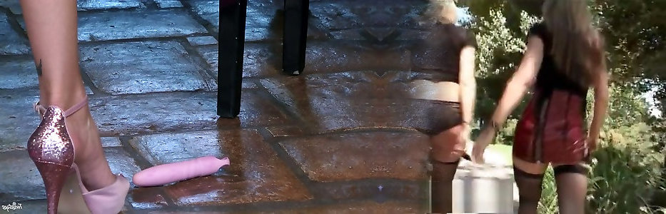 Blonde lesbians from France pleasing one another with a strapon