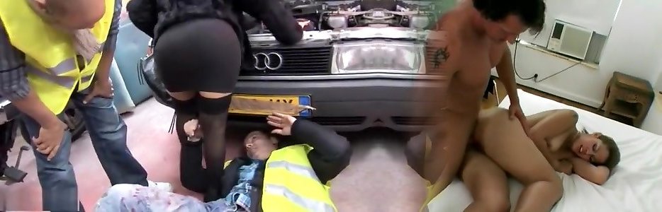 Helma staat faced pech langs de weg. Ze smeekt de monteurs haar te helpen.