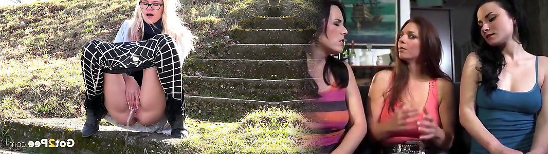 Hetero long haired auburn amateur babe perceives natures call and pisses