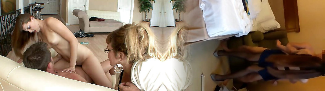 Naughty spouse pummels young stepdaughter in front of his wifey to show her how he enjoys it