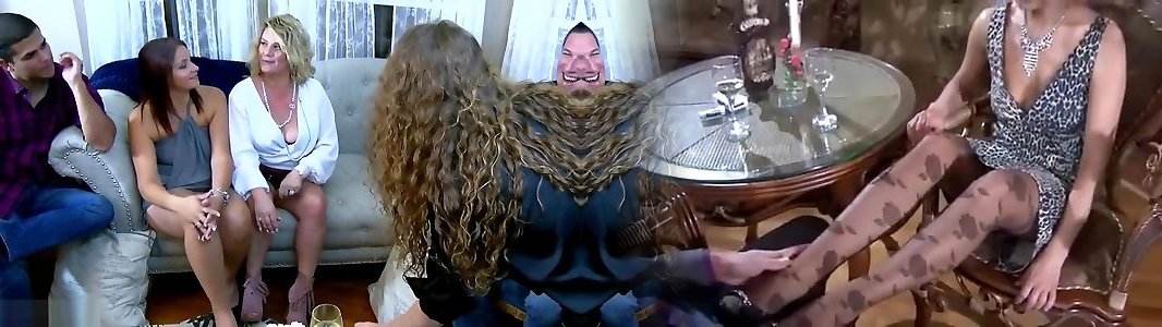 Blindfolded fledgling Milfs blowing yam-sized lollipops in group sex